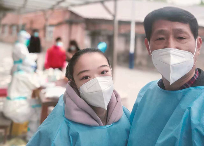 在這場(chǎng)沒(méi)有硝煙的戰(zhàn)“疫”中,邵建華與邵燕翎既是父女,更是“戰(zhàn)友”。父親每日在現(xiàn)場(chǎng)維持秩序,女兒每天拿著喇叭挨家挨戶(hù)的督促居民下樓做核酸,幫助老年人出示核酸碼等工作。父女倆各盡其責(zé)、互相鼓勵(lì)、并肩作戰(zhàn),用最樸實(shí)的行動(dòng)筑牢疫情防線,他們和大家一樣,希望通過(guò)共同努力,早日戰(zhàn)勝這場(chǎng)疫情阻擊戰(zhàn)。