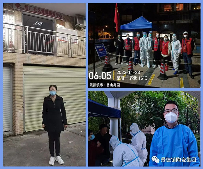 班子成員靠前指揮、科學(xué)調(diào)度、干在一線。景陶集團黨委書記、董事長周敏建既是集團公司疫情防控工作總指揮,又是所在社區(qū)居住樓樓長,同時,還以黨員志愿者身份,每天堅守在防疫一線。